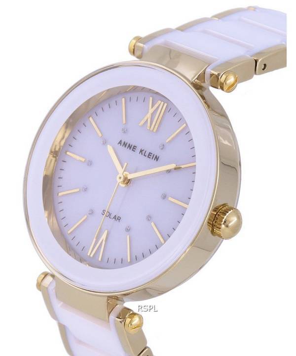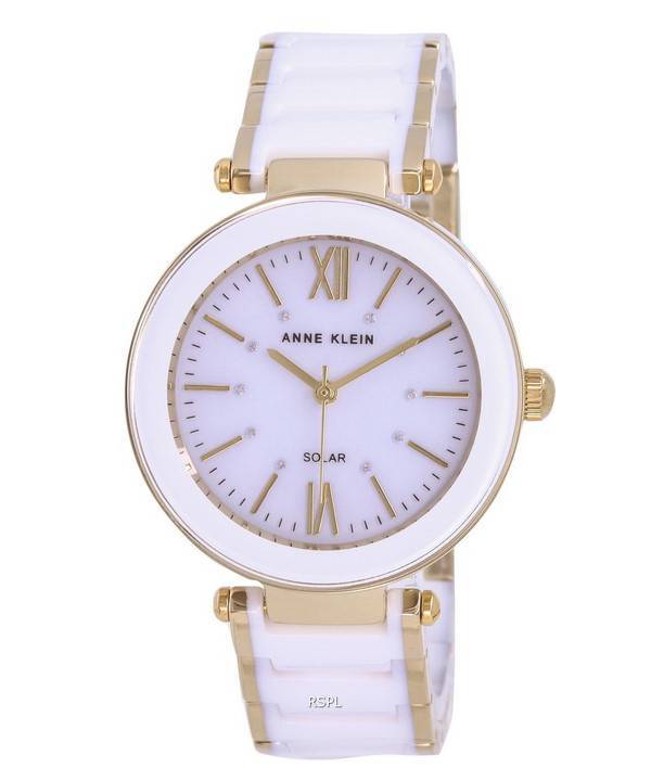 Anne Klein Ceramic White Dial Solar 3844WTGB Women’s Watch