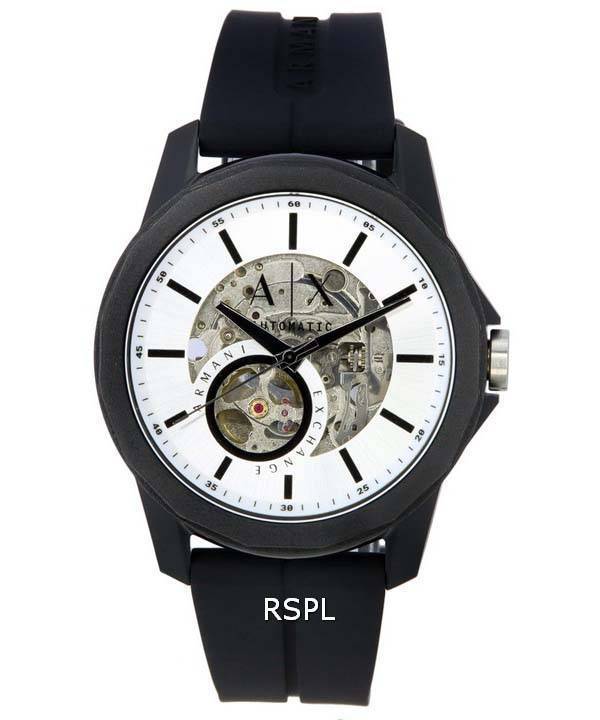 Armani Exchange Black Silicone Strap Skeleton Dial Automatic AX1726 Men’s Watch