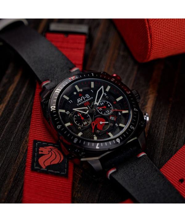 AVI-8 Hawker Hunter Atlas Chronograph Singapore Air Force Limited Edition Pegasus Black Quartz AV-4100-0A Mens Watch