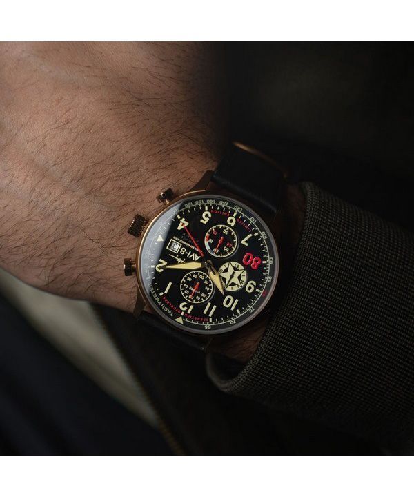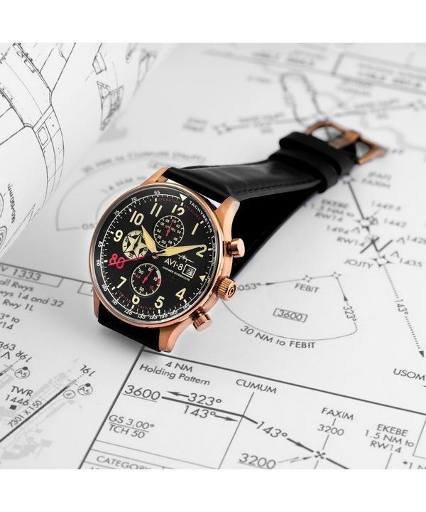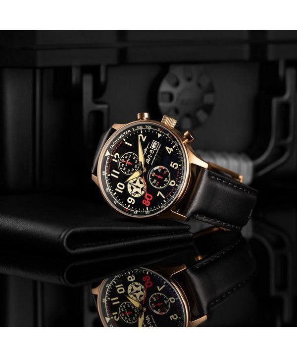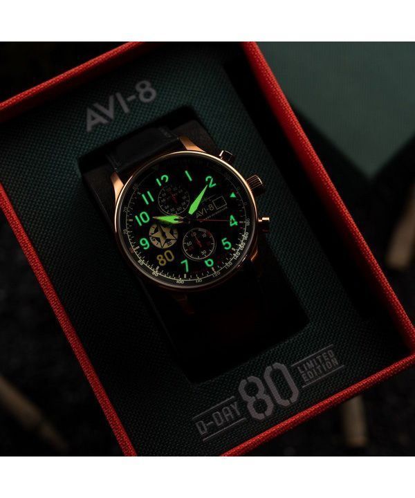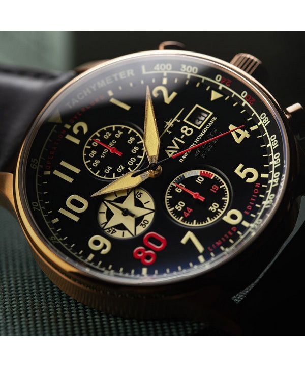 AVI-8 Hawker Hurricane Classic Chronograph D-Day 80 Limited Edition Gold Black Dial Quartz AV-4011-1D Men’s Watch