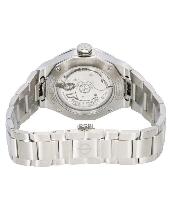 Baume &, Mercier Riviera Stainless Steel Green Dial Automatic M0A10770 Men’s Watch is a statement piece with its unique green dial, offering a refreshing and distinctive look. Powered by an automatic movement, it ensures precise timekeeping without the need for batteries, making it a great option for those who appreciate the reliability of automatic watches. The 100-meter water resistance adds versatility, allowing for casual swimming and water activities. Its stainless steel case ensures durability and strength, while the overall design blends sporty appeal with sophisticated elegance, perfect for both everyday wear and special occasions.