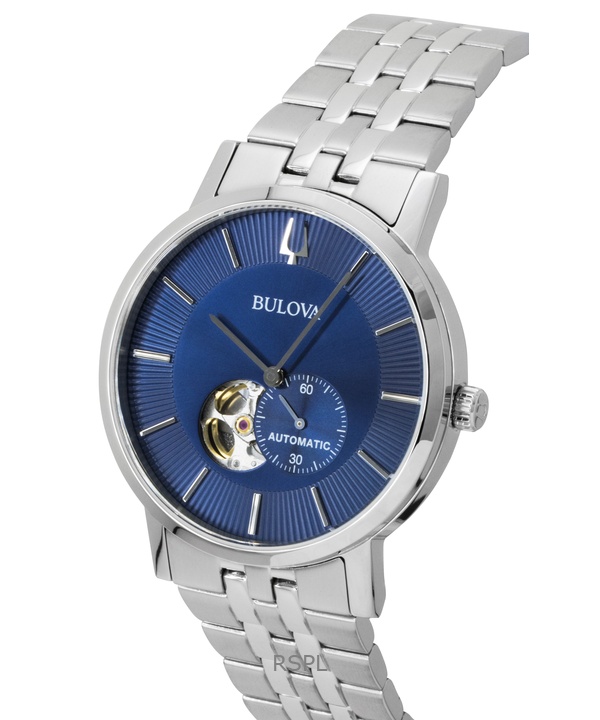 Bulova American Clipper Stainless Steel Open Heart Blue Dial Automatic 96A247 Men’s Watch