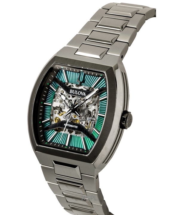 Bulova Maquina Stainless Steel Green Skeleton Dial Automatic 98A321 Men’s Watch