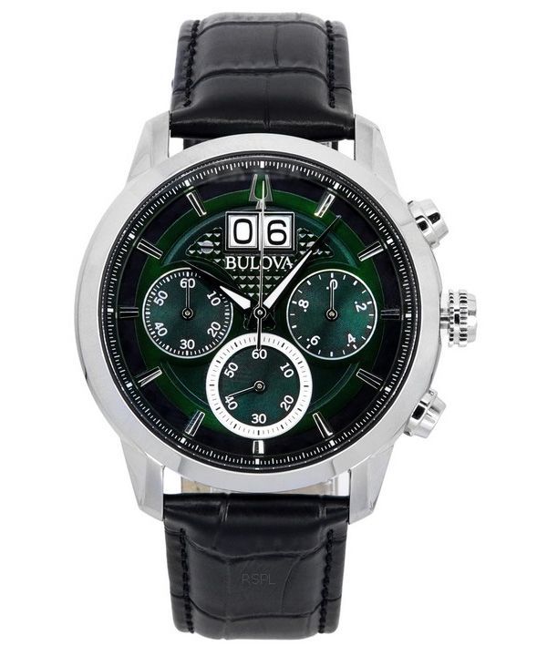 Bulova Sutton Classic Chronograph Leather Strap Green Dial Quartz 96B310 Men’s Watch