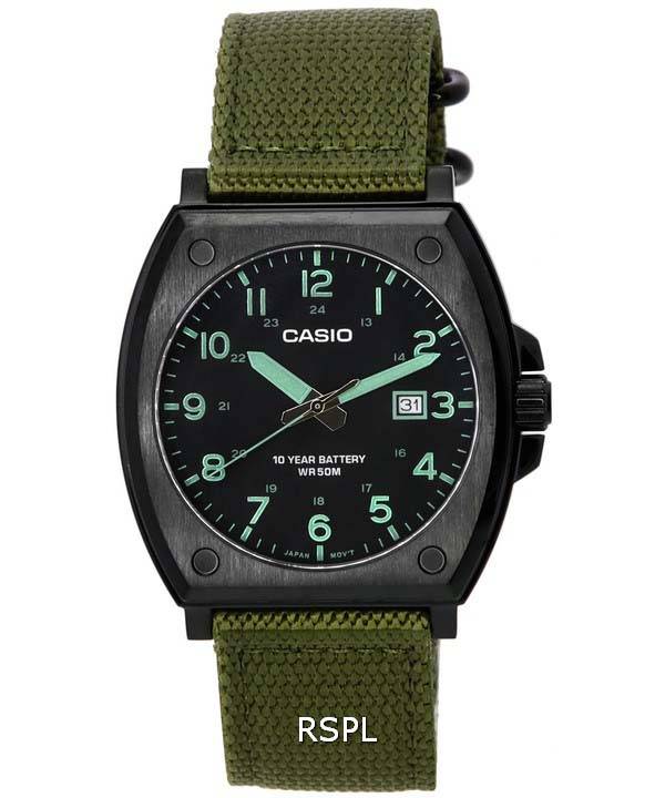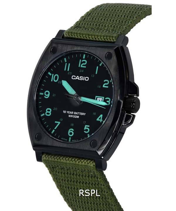 Casio Enticer Standard Analog Green Khaki Cloth Strap Quartz MTP-E715C-3A MTPE715C-3 Mens Watch