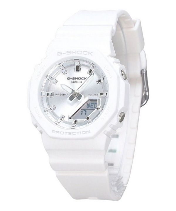 Casio G-Shock Analog Digital White Resin Bio Based Strap Silver Dial Quartz GMA-P2100VA-7A GMAP2100VA-7 200M Women’s Watch