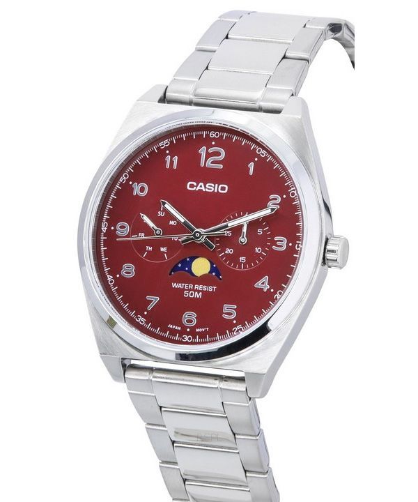 Casio Standard Analog Stainless Steel Moon Phase Red Dial Quartz MTP-M300D-4A MTPM300D-4 Men’s Watch