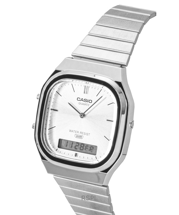 Casio Vintage Analog Digital Stainless Steel Silver Dial Quartz AQ-240E-7A Unisex Watch
