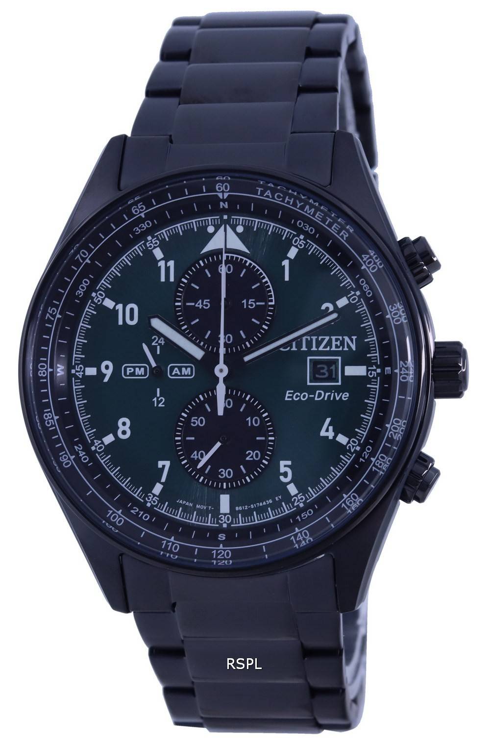 Features Analog Display, Tachymeter Scale, Chronograph Function, 12/24 Hours Display, AM/PM Indicator, 100m Water Resistance