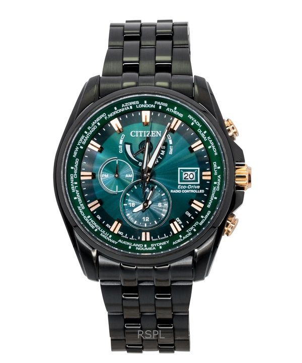 Citizen Perpetual Radio Controlled Chronograph Stainless Steel Green Dial Eco-Drive Diver’s AT9128-87X 200M Men’s Watch