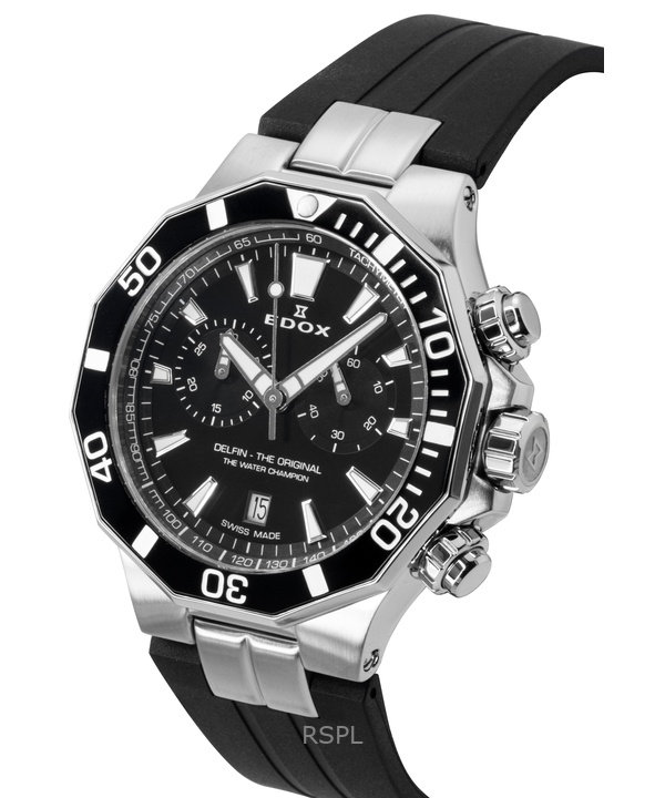Edox Delfin The Original Chronograph Rubber Strap Black Dial Quartz Diver’s 10112-3NCA-NIN 200M Men’s Watch
