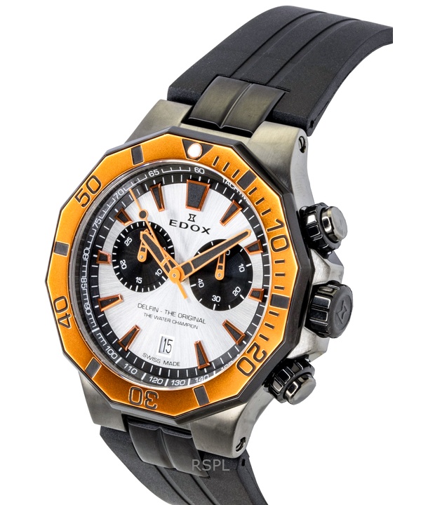 Edox Delfin The Original Chronograph Rubber Strap Silver Dial Quartz Diver’s 10112-37GNOCA-ANO 200M Men’s Watch
