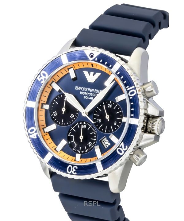 Emporio Armani World Explorer Chronograph Silicone Strap Blue Dial Solar AR11696 100M Men’s Watch