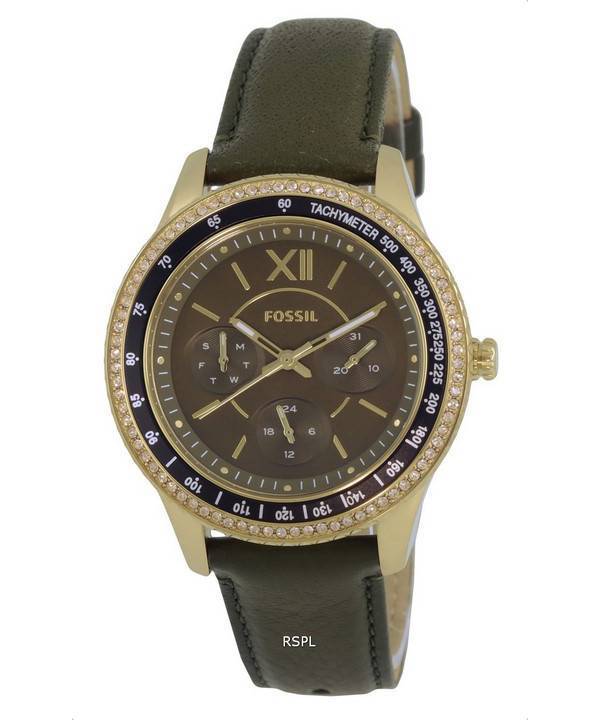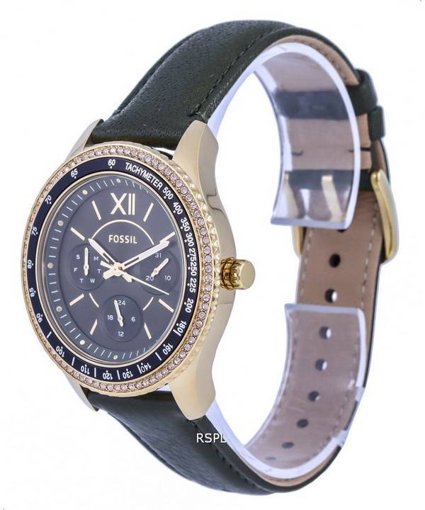 Fossil Stella Sport Tachymeter Crystal Accents Green Dial Quartz ES5124 Womens Watch