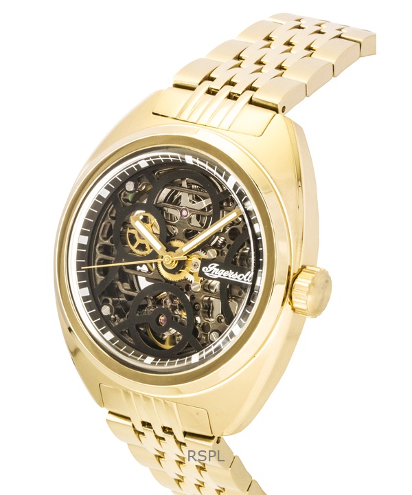 Ingersoll The Wrangler Gold Tone Stainless Steel Black Skeleton Dial Automatic I16902 Men’s Watch