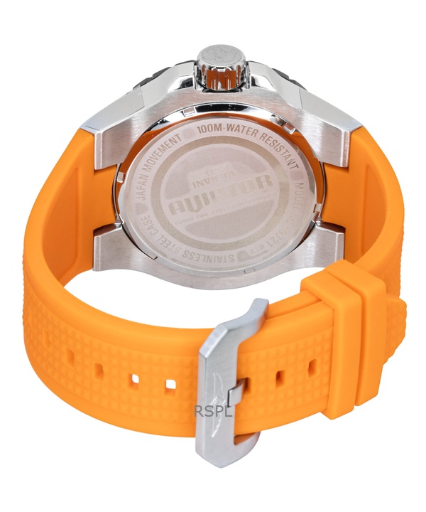 Invicta Aviator Orange Silicone Strap Gunmetal Dial Quartz 49721 100M Men's Watch