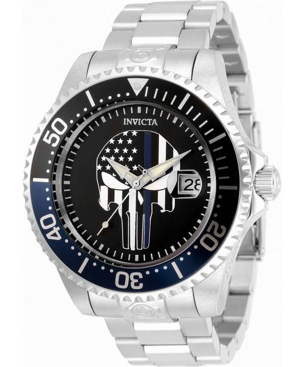Invicta Pro Diver Skull Black Dial Automatic 31928 300M Men’s Watch You can stay rest assured that the Invicta Pro Diver Skull Black Dial Automatic watch is not going anywhere without you; it’s clean, three link bracelet shall hold it tight in its place. It imparts into you peace of mind and a strong mind-set, all that you need to be a professional outdoorsman who doesn’t believe in downtime and laze.