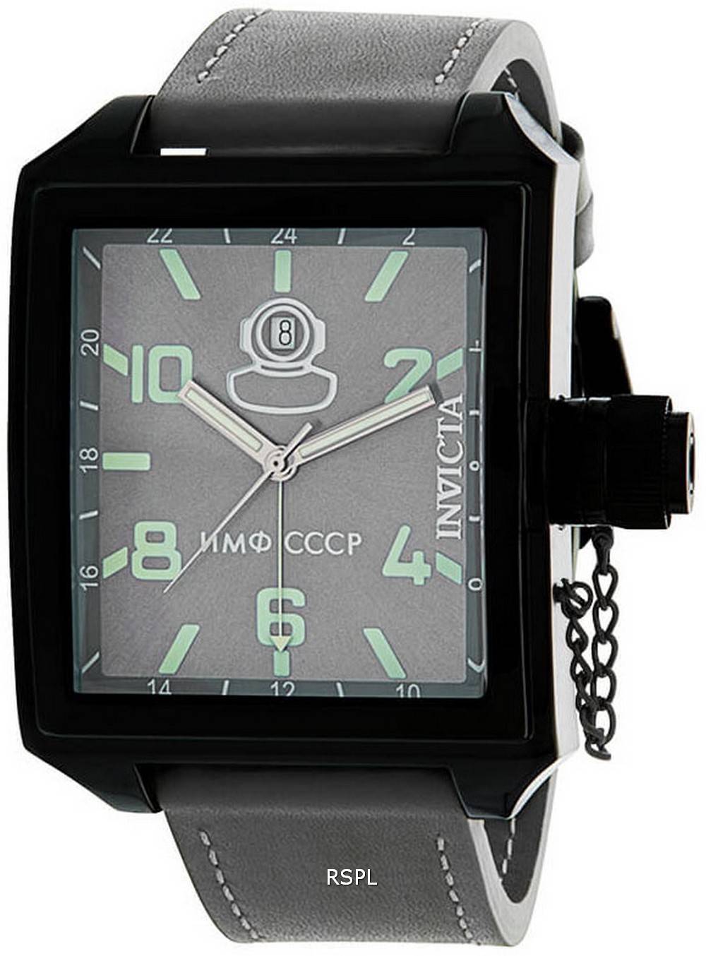 Invicta Russian Diver Grey Dial Leather Strap Quartz 33707 100M Men’s Watch