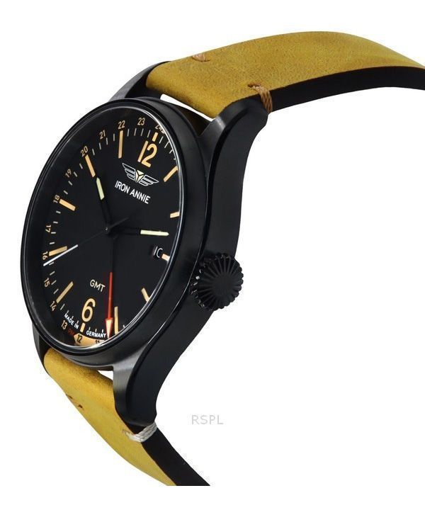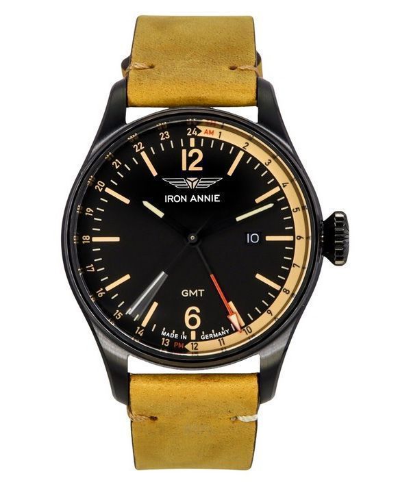 Iron Annie Flight Control Dual Time Leather Strap Black Dial Quartz 51482 Mens Watch
