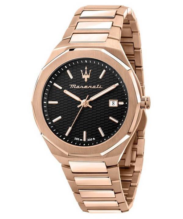 Maserati Stile Rose Gold Stainless Steel Black Dial Quartz R8873642007 100M Men's Watch
