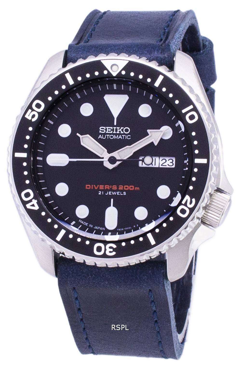 Seiko Automatic SKX007J1-var-LS13 Diver’s 200M Japan Made Blue Leather Strap Men’s Watch