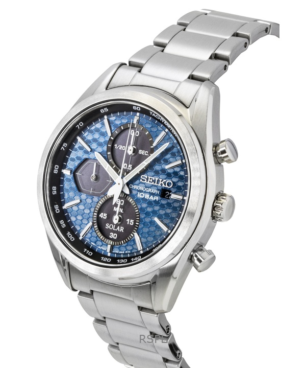 Seiko Chronograph Stainless Steel Blue Dial Solar SSC801P1 100M Men's Watch