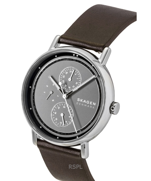 Skagen Signatur Leather Strap Multifunction Grey Dial Quartz SKW6941 Men's Watch