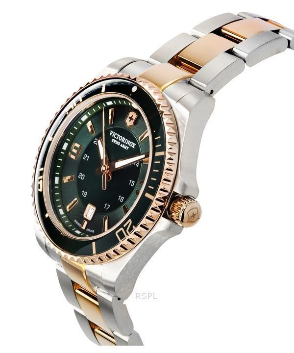 Victorinox Swiss Army Maverick Large Two Tone Stainless Steel Green Dial Quartz 242008 100M Men’s Watch