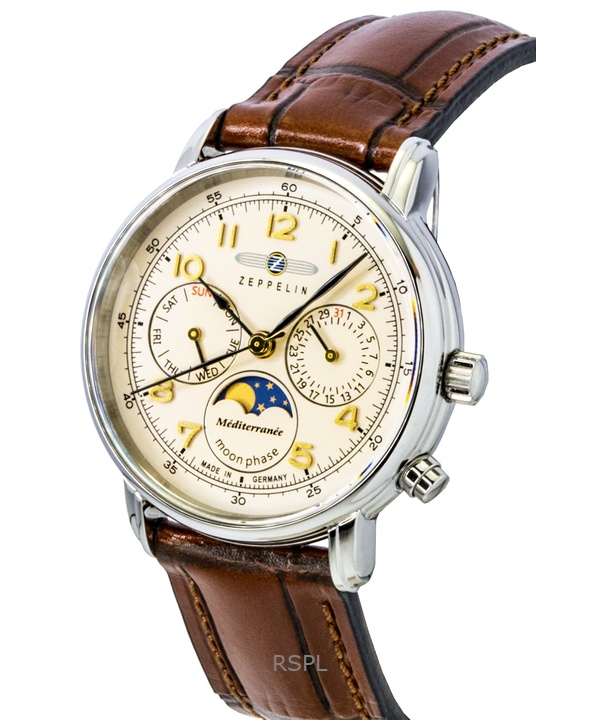 Zeppelin Mediterranee Moonphase Leather Strap Champagne Dial Quartz 96375 Men’s Watch